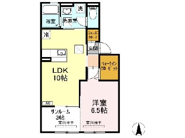 1LDK+S(LDK10 洋室6.5 サンルーム3) |